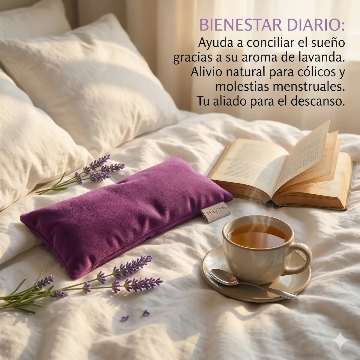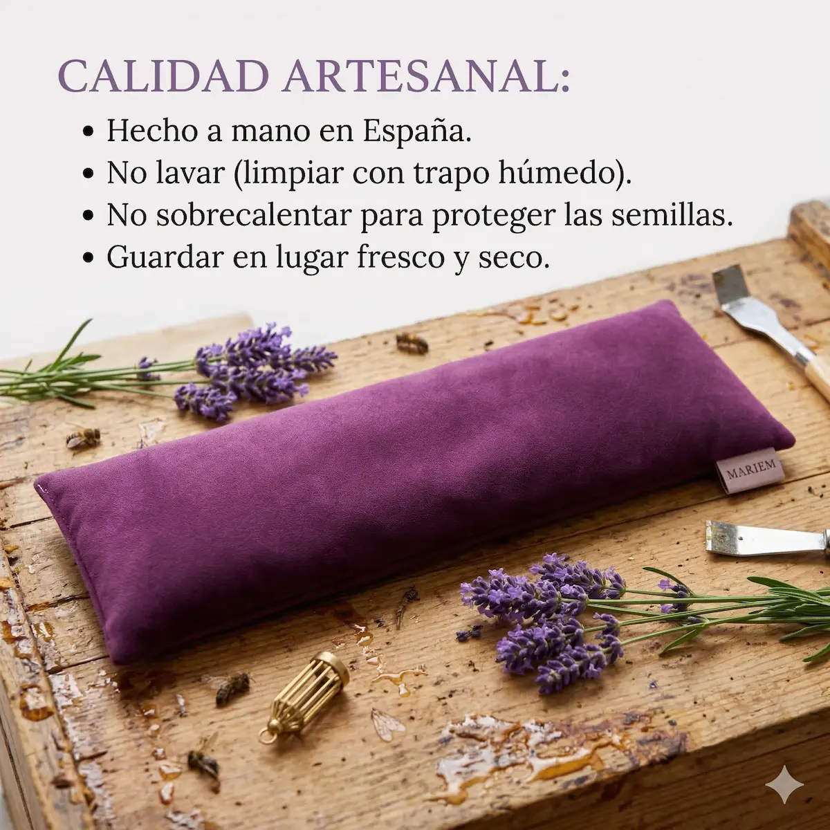 • Mejora del sueño: actúa como una almohada de semillas para dormir de lavanda, ayudando a calmar la mente y favorecer el descanso nocturno gracias a su aroma relajante.