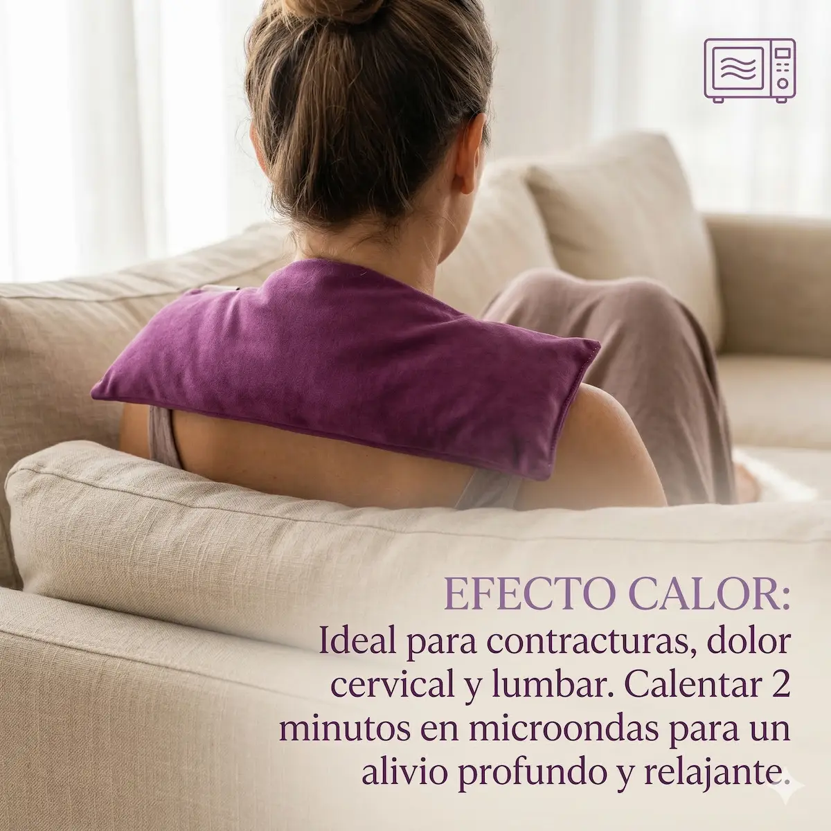 • Alivio muscular: úsalo como una almohadilla térmica cervical de lavanda para relajar músculos tensos y aliviar dolores de cuello, hombros o espalda.